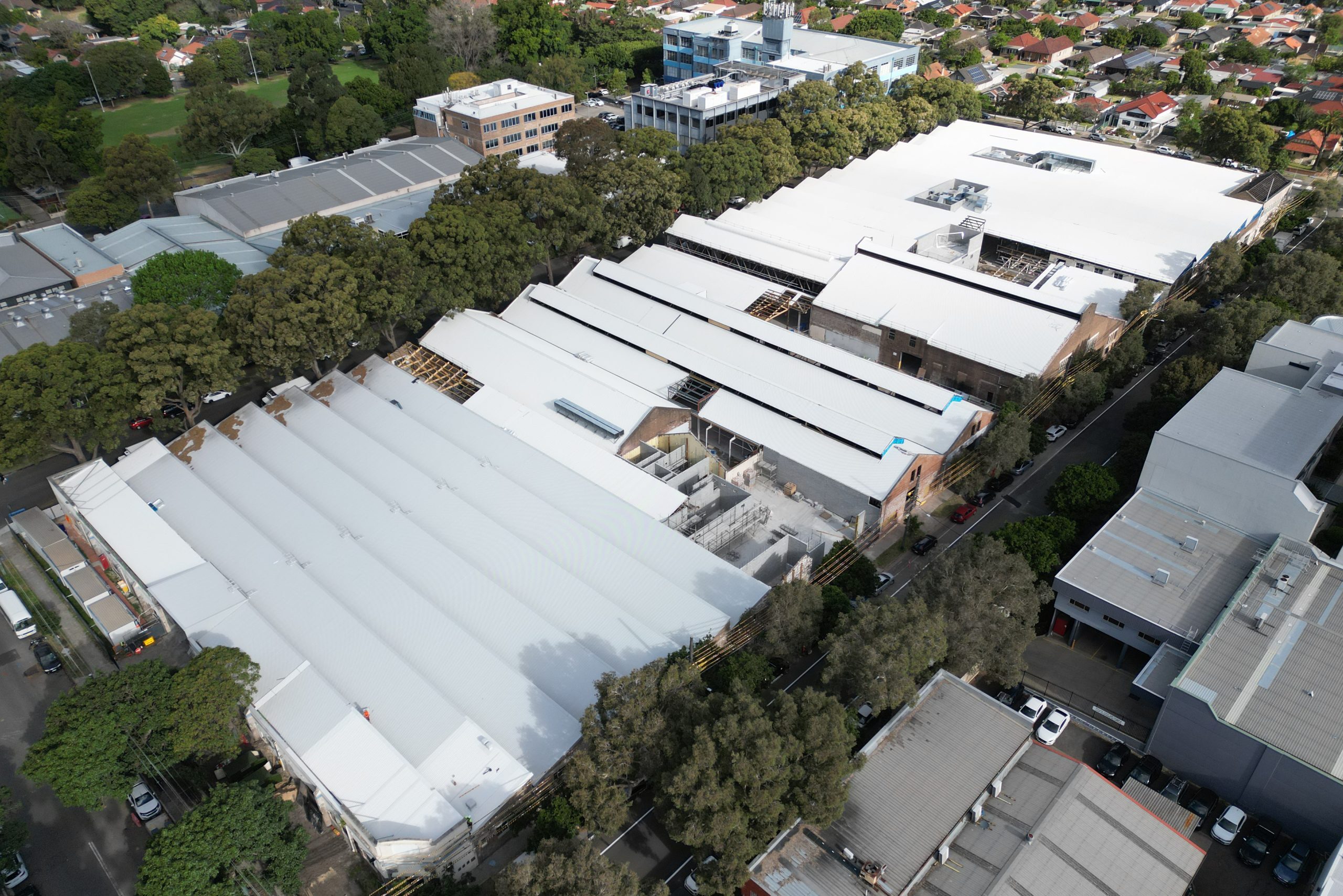 Works are progressing well at the heritage rich industrial icon, Rosebery Engine Yards. Numerous milestones have recently been achieved, including the commencement of internal linings and shopfront glazing finishes. This marks a significant milestone because the project team has invested several months in upgrading the old timber building to meet current standards. Due to the heritage nature of the site, all elements of the existing building have been assessed for strength, density, and compliance to ensure alignment with the new design. While this process has required patience, it has been extremely rewarding with new learnings and discoveries every day.