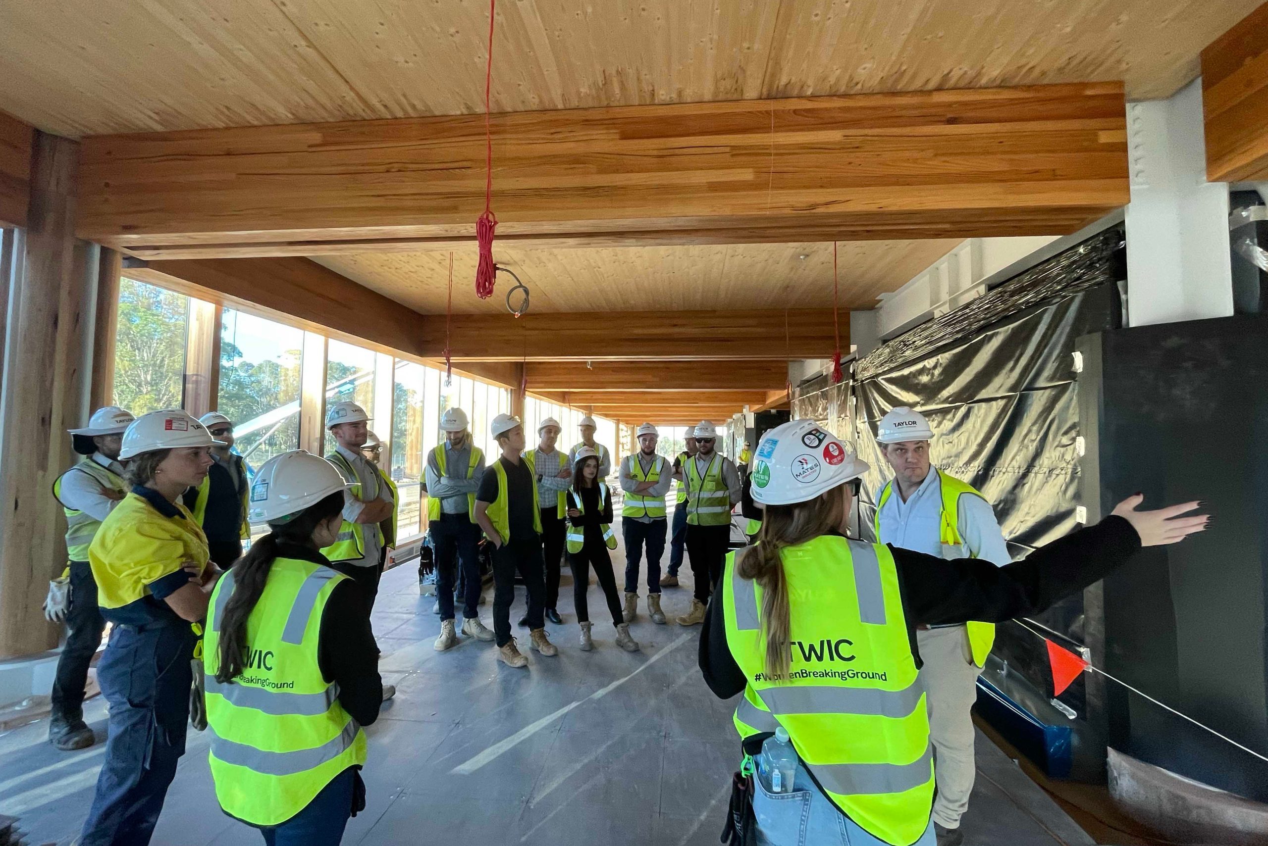 The first combined Cadet, Graduate, and Apprentice peer group catch up of 2024 was recently held at The First Building of Australia’s Newest City, housing the Advanced Manufacturing Research Facility (AMRF). The event allows these three groups to share their experiences, build networks, and develop their understanding of different divisions and projects at Taylor. At each meeting, a Cadet, Graduate, or Apprentice from the hosting site presents to the cohort about their project, outlining the unique challenges involved and innovative solutions created by the project team. This initiative assists individuals in achieving the Communication competencies within the Cadet and Graduate Matrix. To begin the catch up, our Cadet Peer Group champions, Dylan Massad and Ervin Bunic, welcomed everyone and discussed updates to the Cadet matrix. Jade Biazzo, Cadet, then offered insights from Taylor’s Pre-Construction division about projects in our pipeline and their status. Amanda Bruhn, Cadet on the AMRF site, provided an in-depth presentation detailing the project’s scope, initial procurement, programme, construction methodology, and personal lessons she has learnt. Following this, Amanda led the group on an informative site tour along with Apprentice, Baris Ozturk, who provided additional insights and fun facts about the project. The cohort then heard from Savcon Managing Director and Construction Manager, Mario Savva and Lindsay May, who discussed key innovations on the project, including the mass use of Cross Laminated Timber. Jason Tulich and Scott Dobson, our Graduate Peer Group champions, closed out the event with a short Q&A session and reminders for upcoming company events. Thank you to our Peer Group champions, AMRF project team for hosting the event and to all those involved in organising the catch up!