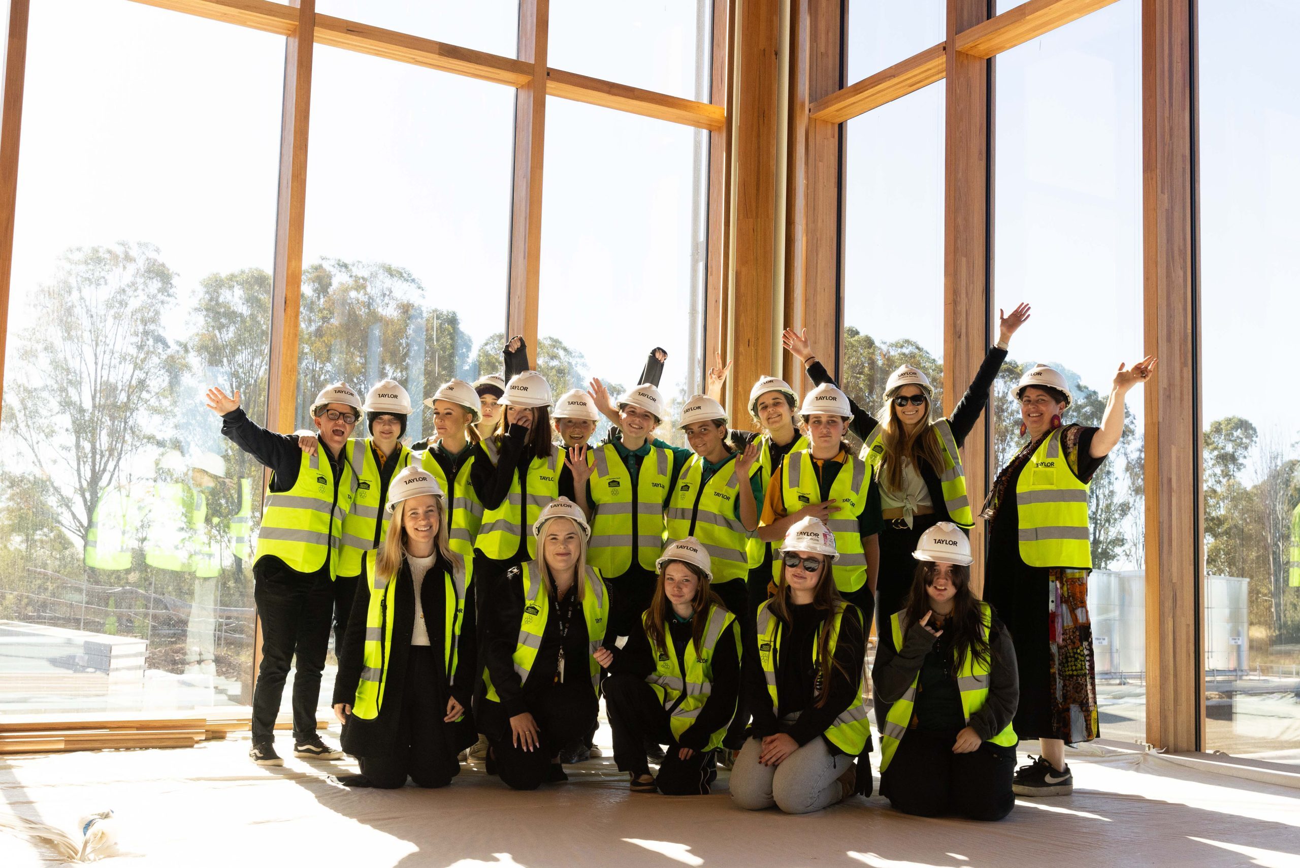 In the spirit of fostering educational opportunities and cultural connection, Taylor, in collaboration with the KARI Foundation and Bernadette Hardy, hosted an inspiring site tour for Indigenous students at the First Building, located on the ancestral lands of the Dharug people, and future home to the Advanced Manufacturing Research Facility. The tour was a unique blend of education, culture, and construction, tailored for female Indigenous students from Cambridge Park High School who have shown a keen interest in the construction industry. The First Building, a project that embodies a connection to Country with its design inspired by the natural waterways and the Cumberland Plains, is an open and welcoming architectural expression that reflects the fluidity of the landscape and connects the building to the deep history of Country. The KARI Foundation's role in supporting these students is pivotal, offering them educational experiences and pathways to employment opportunities. The event began with a heartfelt welcome by Bernadette Hardy, a proud Gamilaraay and Dharug spatial designer and cultural researcher who was engaged as a sub-consultant in the design process of the First Building. Bernadette shared her personal journey and the opportunities available in design and construction. Taylor’s Senior Contract Administrator, Azin Danesh, and Cadet, Amanda Bruhn, followed by sharing fun facts about the project and their career stories, illustrating the diverse pathways into the construction sector. Amanda’s journey from high school to a cadetship, leading to her current studies in Construction Management, highlighted the transformative power of education and mentorship.