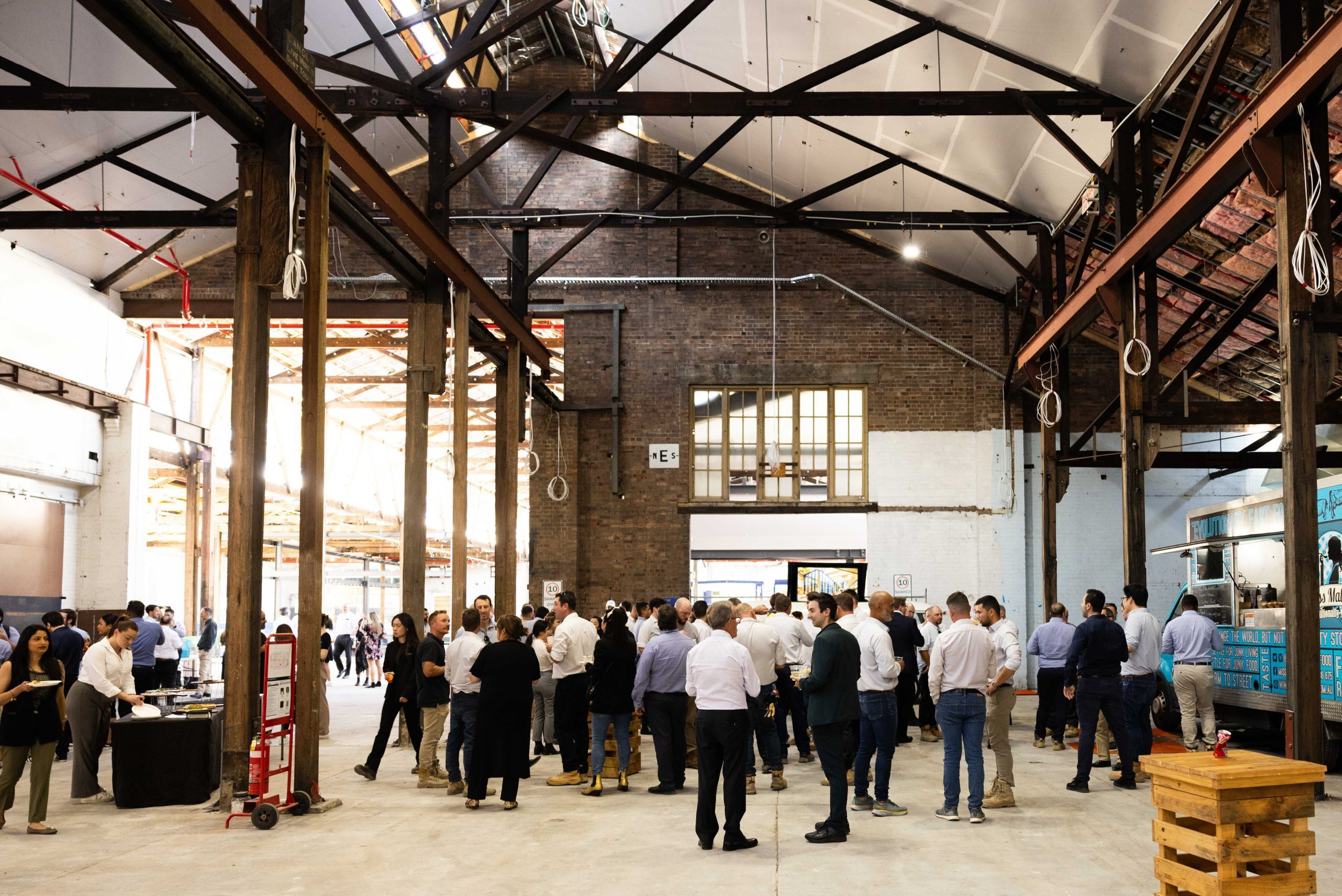 Recently, employees from all facets of the business met at Taylor’s historic Refurbishment and Live Environment project site, Rosebery Engine Yards, for the last Let’s Get Together of 2023. Following the cessation of construction activity for the day, the Taylor team came together to reconnect while enjoying food and beverages from a selection of local food trucks.