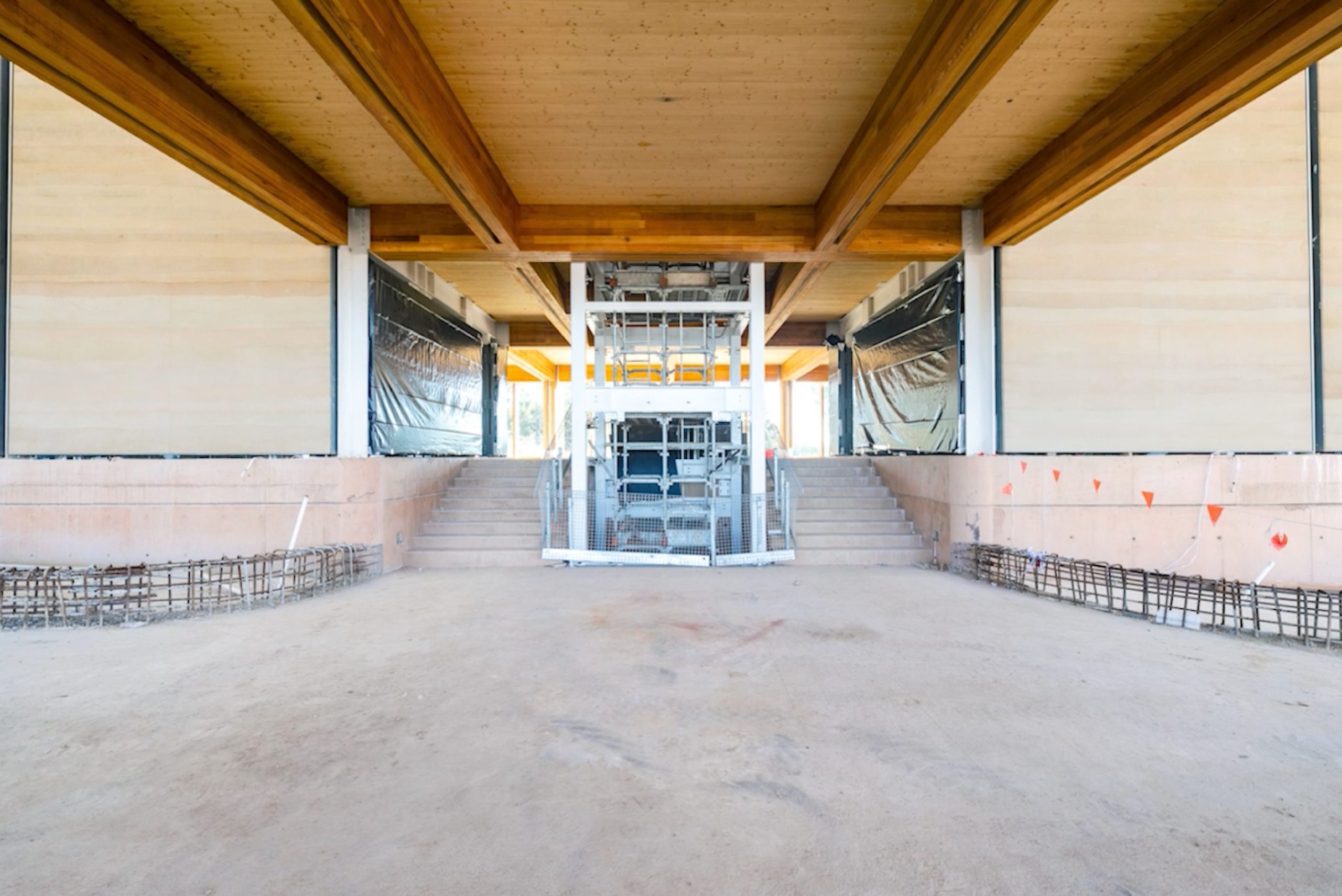 Rammed earth walls are an integral part of First Building’s design to allow visitors to feel connected to the warmth, depth, and texture of the environment. Using natural materials with strong sustainability credentials and low embodied carbon, First Building’s twenty-four rammed earth wall panels were constructed on site from raw materials. Supported in a steel framework, the walls encase the office workspace core and provide an impressive entrance with four large wall panels in the central spine spanning almost the entire height of the building. The walls are non-toxic, non-polluting, never needing to be painted or plastered. With impressive insulation benefits, the walls help maintain a constant internal temperature, and at end of life, they can be broken back down and returned to the ground from which they came.